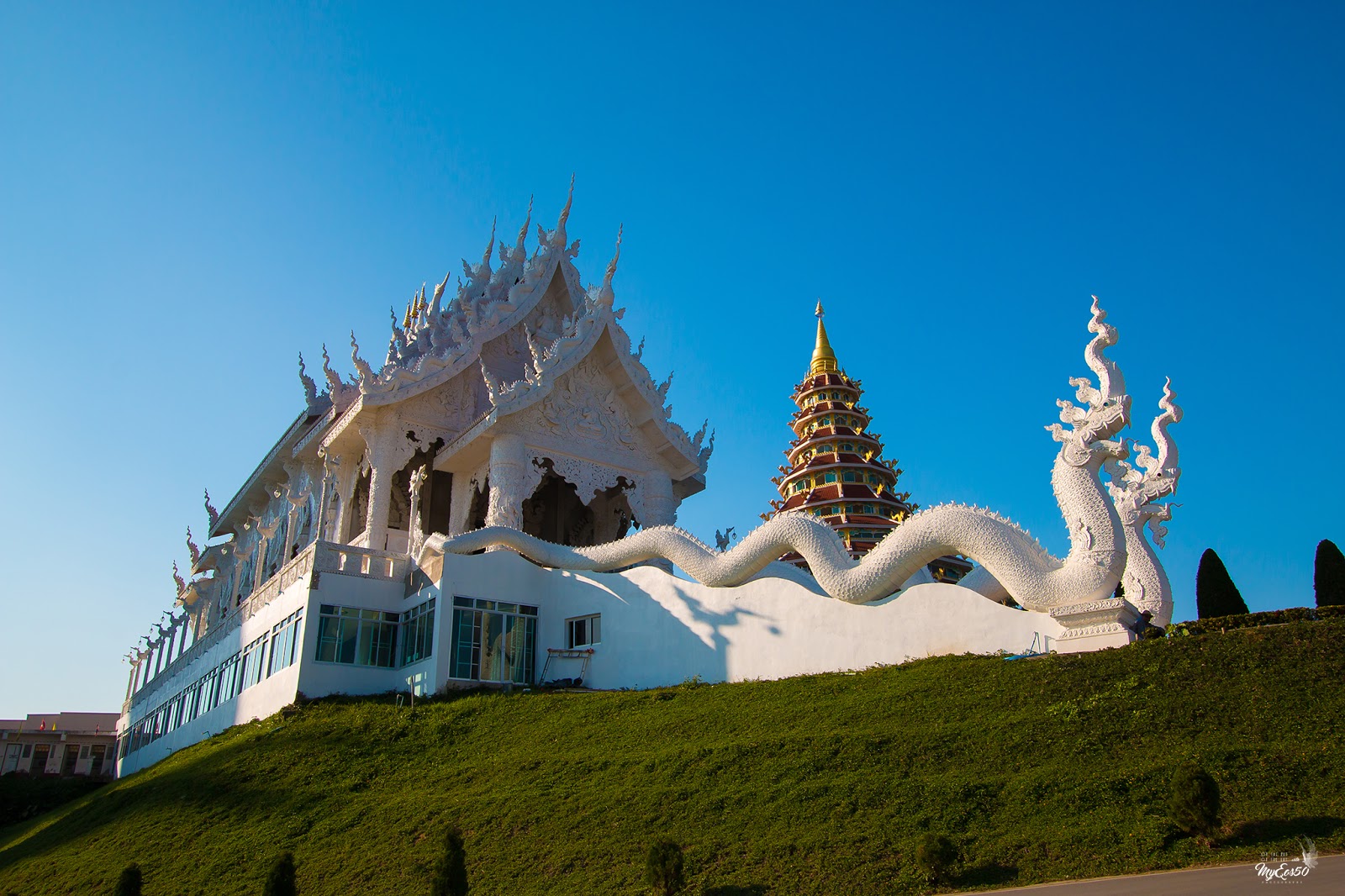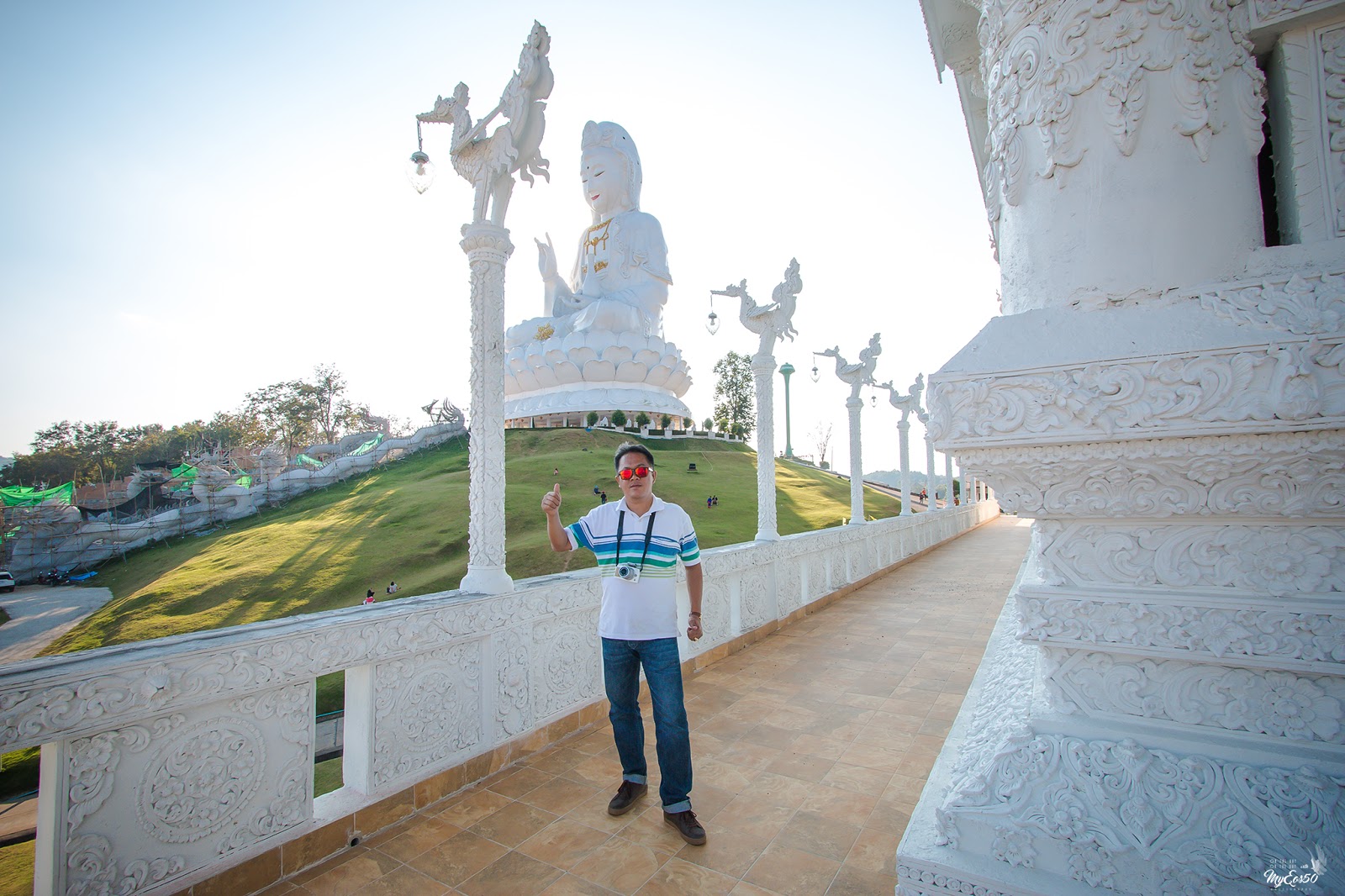 ออกจากร้านนี้ เราไปต่อกันที่ วัดห้วยปลากั้ง เนื่องจากเรามาถึงที่นี่ก็จะเย็นแล้วไม่ค่อยได้เดินดูอะไรมากเหมือนกัน ได้แต่เดินดูภายนอก เป็นวัดที่มีเนื้อที่กว้างมาก รองรับรถนักท่องเที่ยวได้มากมาย
