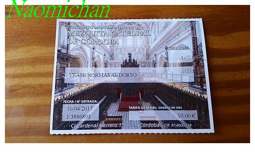 วันที่ 10 เมษายน 2017 ช่วงบ่าย เดินมาเที่ยวชมมรดกโลก The Mosque - cathedral of Cordoba เดอะ เมซกีตา - กาเตดรัล กอร์โดบา ของประเทศ สเปน ค่าบัตรเข้าชมคนละ 10 EU