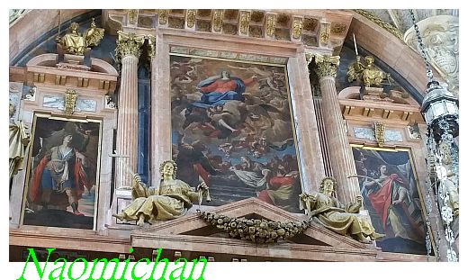 มีรูปปั้นของพระเยซู พระแม่มารี และรูปนักบวชต่างๆ เทพเจ้า เทพบุตร และภาพวาด สวยงาม