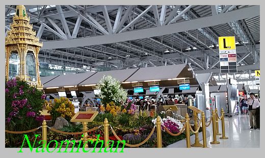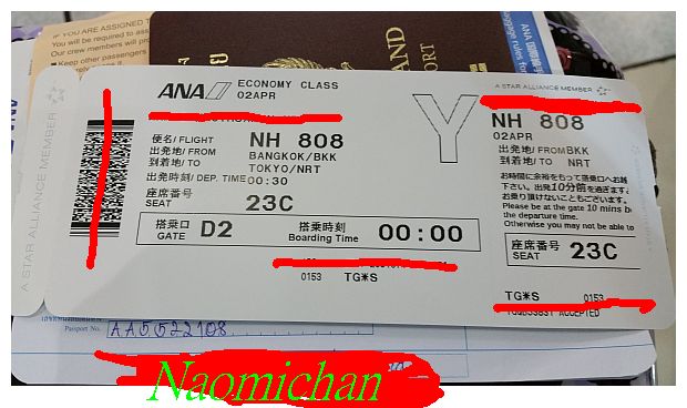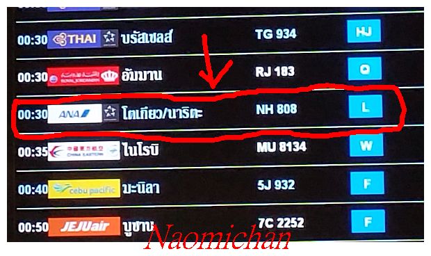 เครื่องบินออกตอนเที่ยงคืนกับอีก 30 นาทีของวันที่ 2 เมษายน แต่พวกเราต้องมาเช็คอินตั๋วเครื่องบินกันในวันที่ 1 เมษายน ไปกับสายการบิน ANA ( All Nippon airways ) นัดเจอะกันแถวประตู 4 เพราะมีที่นั่งรอ แต่เคาน์เตอร์เช็คอินอยู่ที่ Row L