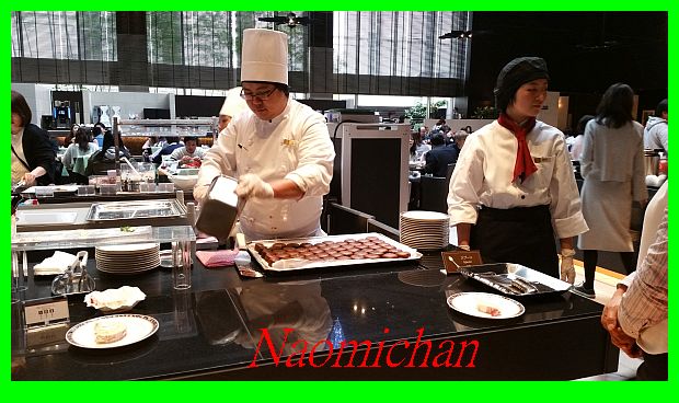 คราวที่แล้วมีของหวานพิเศษที่มอบให้ทุกคนต่อ 1 ชิ้นเป็นเครปกลิ่นส้ม เชฟออกมาทำให้สดๆใหม่ๆ ร้อนๆ เลย คราวนี้ เซฟ ทำเมนูของหวานให้ทุกคนต่อ 1 ชิ้น เป็น ช๊อคโกแล๊ตลาวา พนักงานจะมาบอกที่โต๊ะ ว่าเซฟจะแจกขนม ให้ไปต่อคิว ที่ลานเค้ก