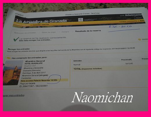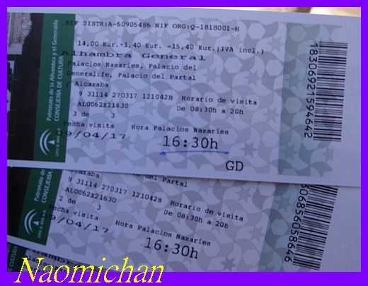 วันที่ 9 เมษายน 2017 หลังจากเช็คอินเข้าที่พักและออกไปหาอะไรกินมื้อกลางวันแล้ว ได้เวลาตามนัดที่เราจองตั๋วจากหน้าเว็ปไซด์ เพื่อไปพระราชวังอาลัมบรา(Alhambra ) ซึ่งอยู่ในเมือง กรานาดา( Granada ) La Alhambra de Granada