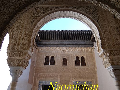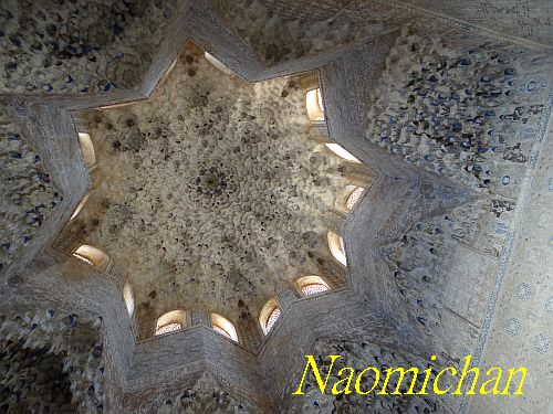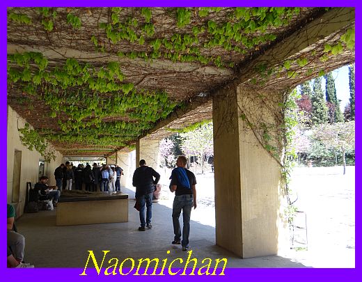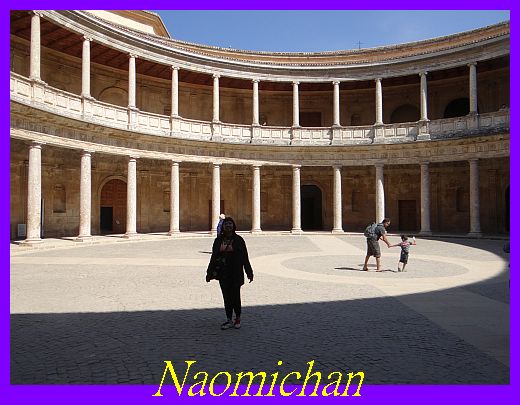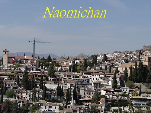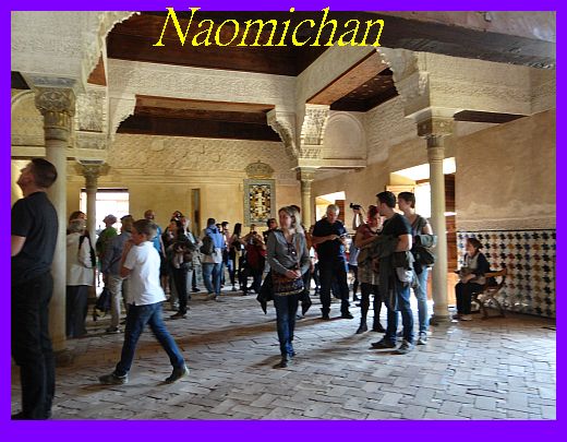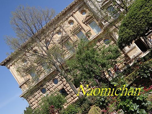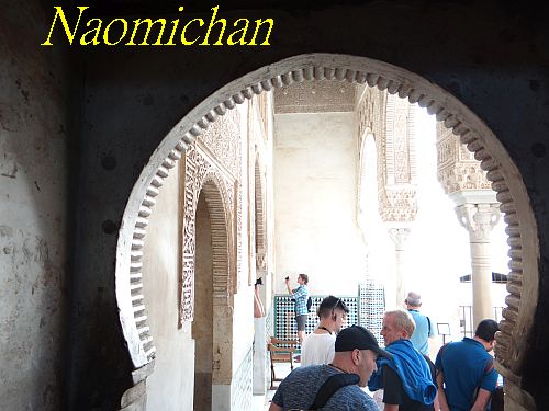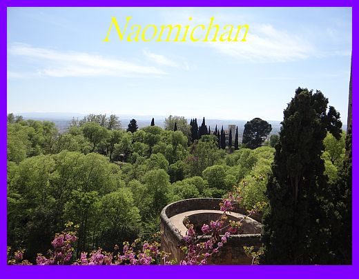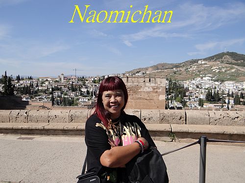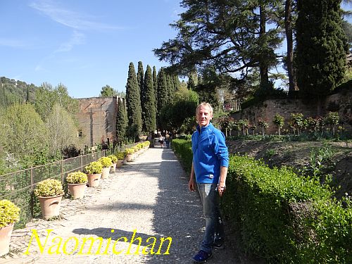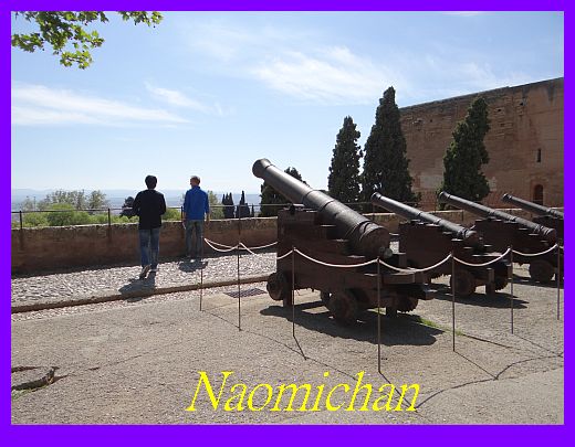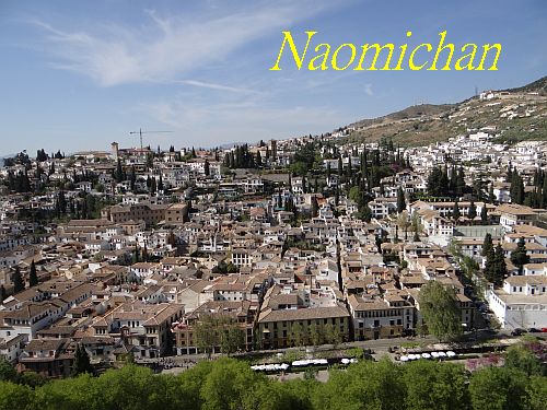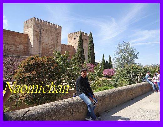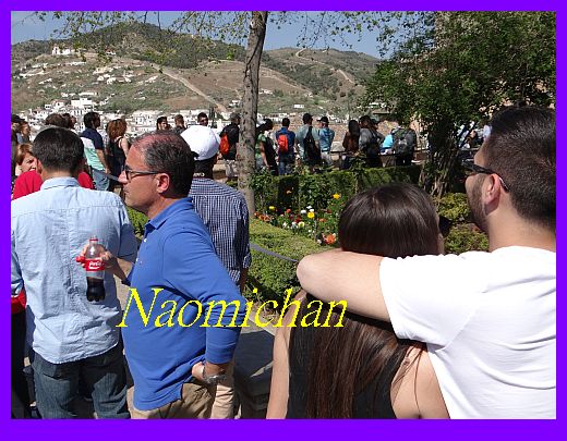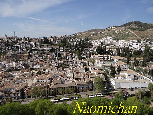 ส่วนที่ป้าซิ่งนั่งอยู่ตรงนี้ก็เป็นระเบียงของพระราชวังอาลัมบรา ที่เป็นสวนและอาคาร ที่ตั้งอยู่บนเนินภูเขาสูง ซึ่งเราก็จะสามารถมองเห็น บ้านเรือนราษฏร์ที่อยู่เบื้องล่าง ยิ่งได้ขึ้นไปอยู่บนที่สูงของพระราชวัง จะยิ่งได้มองเห็นรอบตัว ตอนที่นั่งรอคิวอยู่ตรงนี้ เราเห็นเป็นกระจุกเดียว แต่พอหลังจากได้ขึ้นไปบนหอของพระราชวัง ได้เห็นไกลออกไปและเห็นได้รอบ