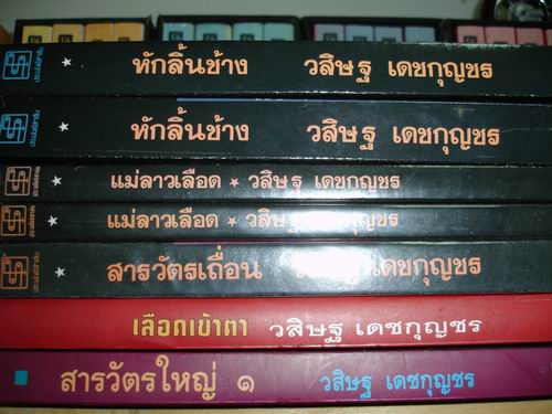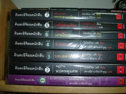 มาแล้วจ้า หลังจากไปจัดการกับห้องหนังสืออันแสนรก รื้อๆมาได้มาตามนี้เลยค่ะ เซตแรกเล่มโปรดในดวงใจของใครหลายๆคน เพชรพระอุมาค่ะ ![]() ต่อไปเป็นเซตหนังสือแปลค่ะ แนวสืบสวนสอบสวน ของอาคากาวาจิโร ต่อไปเป็นของแดนบราวน์ค่ะ ตอนแรกกะซื้อมาอ่านเล่นๆตามกระแส แต่อ่านแล้ววางไม่ลงอ้ะ ขนาดเข้าห้องน้ำยังเอาไปด้วยเรยยย 555 ![]() อีกเซตเป็นเรื่องแปลของญี่ปุ่นเหมือนกันค่ะ เป็นชุดคินดะอิจิ คินดะอิจิคนในหนังสือชุดนี้เป็นปู่ของคินดะอิจิคนในการ์ตูนนะคะ ![]() อีกชุดเป็นหนังคือแนวสืบสวนของไทยค่ะ ชอบมาก "ชายร่างสูงผิวคล้ำ" แต่เสียดาย สารวัตรใหญ่หายไปเล่มนึงอ่า เพื่อนยืมไปแล้วก็หายไปเลย ใครพบเจอที่ไหนแจ้งด้วยนะคะ อยากซื้อมาแทน ![]() แล้วจะพลาดเรื่องที่ใครใครเฝ้ารอคอยไปได้ไง ล่ะ เรื่องที่คุณก็รู้ว่าเรื่องอะไร 555 สองเล่มนี้น่าจะเป็นของหายาก (หรือเปล่าหว่า หรือมันหายากสำหรับเราคนเดียว) เป็นหนังสือที่เป็นของชำร่วยงานสัปดาห์หนังสือของ สนพ.มติชน สองเล่มนี้ได้มา10กว่าปีแล้ว ![]() พอแค่นี้ก่อนละกันนะคะ เหนื่อยแล้วอ้ะ เหนื่อยกับการรื้อหนังสือ มาถ่ายรูปน่ะค่ะ เพราะห้องหนังสือเรารกมั่กมากกกกก อยากขอคำแนะนำด้วยนะคะ เพราะเราเพิ่งหัดทำบล็อกน่ะค่ะ แล้วก็ขอบคูรทุกความเห็นนะคะ ![]() |