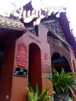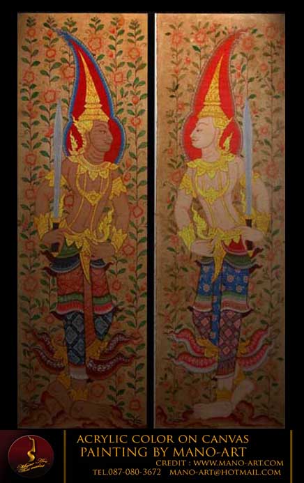 มาให้ได้ชมกันครับ เป็นผลงานภาพวาดจิตรกรรมไทยร่วมสมัยตอนหนึ่งในพุทธประวัติ ตอนพระพุทธเจ้าเปิดโลก ประดับไว้บนผนังเหนือประตูทางเข้าศาลาฝั่งทิศตะวันออก