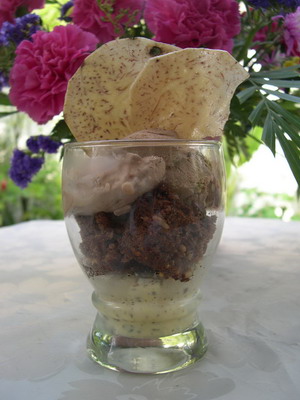 คุณย่าของน้องทัณฑ์แต่งพาร์เฟ่ต์แก้วนี้ ข้างบนเป็นเผือกฉาบ ตรงกลางเป็นบราวนี่ค่ะ