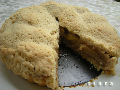 อดใจไม่ไหวกินไปชิ้นหนึ่งเต็มๆ เลยเรา อร่อยค่ะ เปรี้ยว หวาน มัน และหอมกระจาย พายจะเป็นแบบกรอบร่วนนะคะ หากใช้เนยเค็มจะติดเค็มที่ปลายลิ้นนิดหน่อย แต่ไม่เสียหายค่ะ ถือว่าเป็นรสชาดที่ลงตัวมาก เจ้าของสูตรบอกว่าให้ทานกับไอศครีมวานิลลาจะอร่อยมาก อืม...ไม่กล้าวัดแคลลอรี่เลยแหะ อ้วนอย่างมีคุณภาพแน่