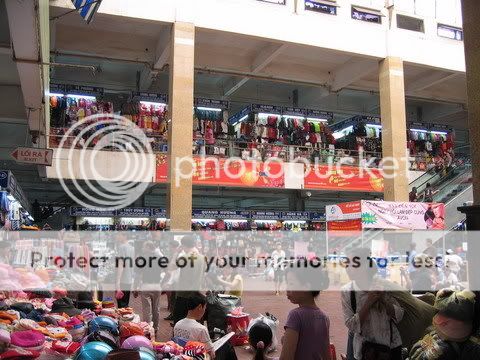 ออกจาก รร เลี้ยวขวามุ่งหน้าสู่ตลาดขายส่งเสื้อผ้า ดูซิจะเหมือน สำเพ็ง โบ้เบ้ ประตูน้ำบ้านเราหรือปล่าว ระหว่างทางก็มิวายที่จะถ่ายบรรยากาศมาให้ชมกัน แหมระหว่างเดินอยู่นั่น สายตาใด้สะดุตรงร้านอาหารริมฟุตบาทแห่งหนึ่ง โอพระเจ้า ในถาดกลมๆใบนั้นเต็มไปด้วย เนื้อมะหมา สี่ขา แทบจะไม่เชื่อสายตาเลย หยุดจ้องอยู่พักใหญ่ ใช่จริงๆด้วย จะไม่ใช่ใด้งัยหละก็มันส่วนที่เป็นสะโพก มีหางโผล่มาด้วย แต่ไม่ยักกะเห็นหัวมันอะ (ลักษณะคล้ายๆกับต้มพะโล้นะ แต่ไม่มีน้ำ มีแต่เนื้อ) และแล้วก็นึกขึ้นใด้เอากล้องออกมาเพื่อที่จะถ่าย แต่โดนเบรคโดยเจ้าของร้านซึ่งยืนด้อมๆมองๆเราอยู่นานแล้ว โดยการที่เขาเอาผ้าขาวมาปิดถาดเอาใว้ โออดถ่ายเลยเรา แห้วอีกแระ ไม่เป็นไรเดินต่อไปดีกว่า และแล้วก็มาถึงห้างขายเสื้อผ้าราคาส่ง และปลีก ใหญ่เหมือนกัน มีขายเหมือน สำเพ็ง บวกประตูน้ำ บวก โบ๊เบ๊ นั่นแหละ เสร็จจากนั้นก็เริ่มเดินต่อไปยังจุดหมายอื่น
