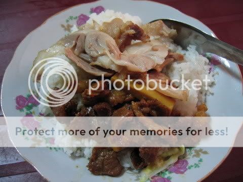 มองนาฬิกา เอ้ยยย นี่มันบ่ายโมงแล้วนี่หว่า เอาหละต้องหาอะไรใส่ท้องก่อนดีกว่า กองทัพต้องเดินด้วยท้อง ว่าแล้วก็เจอร้านขายข้าวแกงอิอิ มันต้องลองกันหน่อยแล้ว เดินเข้าไปสั่ง สั่ง ข้าวสวยร้อนๆ ราดกับข้าวสองอย่างมี หมูเค็ม หมูนึ่ง อิอิ (ใจก็ไม่แน่ใจว่าหมูรึปล่าว ต้องลอง) อืมรสชาดไม่เลวแฮะ มองหาน้ำปลา แต่ไม่มี เลยต้องกินไปทั้งอย่างงั้น เรามันลูกทุ่งตัวจริงอยู่แล้ว แย่กว่านี้ก็กินมาแล้ว อิอิ ไม่นานจานนั้นก็ เกลี้ยง ครับ เกลี้ยง ไม่เหลือข้าวซักเม็ด