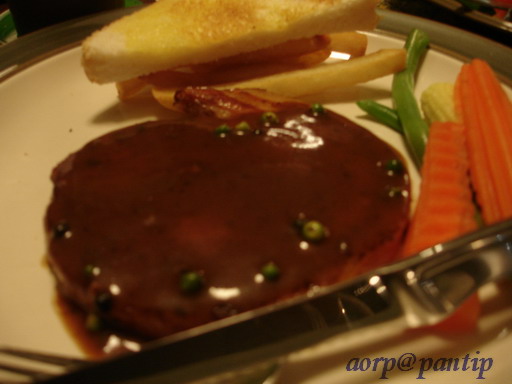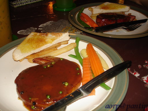 กว่าเราจะเสร็จธุระไปรับคุณเธอก็ปาไป 3ทุ่มค่ะ ก็เลยพากันไปกิน สเต๊ก แถวบ้านมันอะแหละ