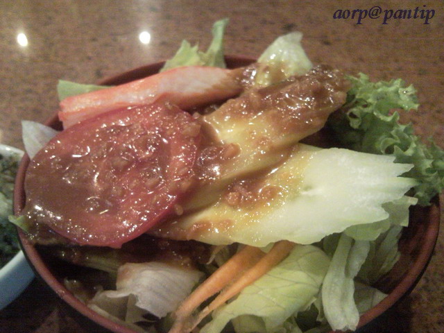 สลัดมาเสริฟ์แล้วค่าา เราไม่ชอบเลยอ่าาา รสชาติมันหวานมากเลย แล้วเหมือนกับว่าใส่อะไรบางอย่างที่เราไม่ชอบลงไปด้วยอะค่ะ