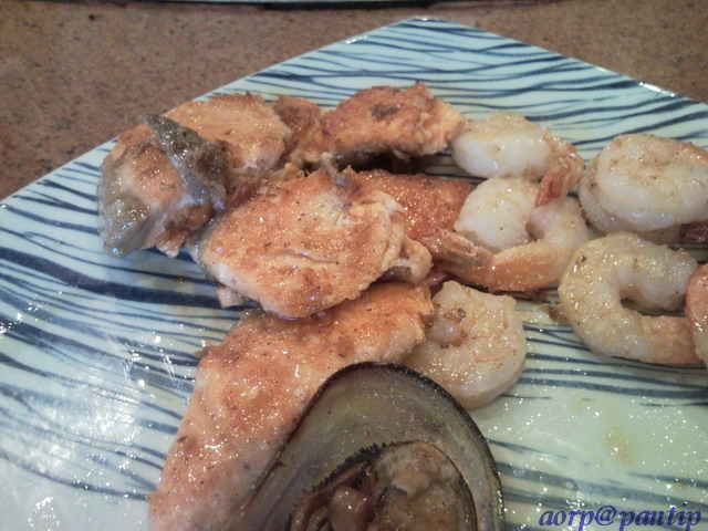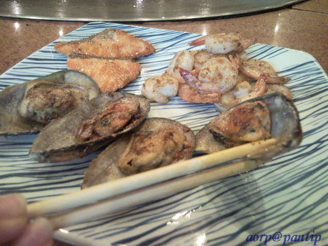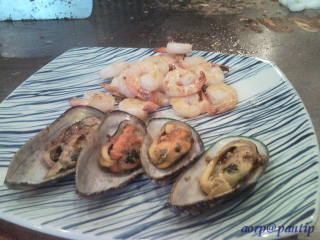 มาแล้ววว กุ้งกับหอยย น่ากินมากมายย เลยยย เค้าใส่เนยด้วยนะที่กุ้ง แล้วก็ใส่กระเทียมที่หอยด้วยย อร่อยอะค่ะ
