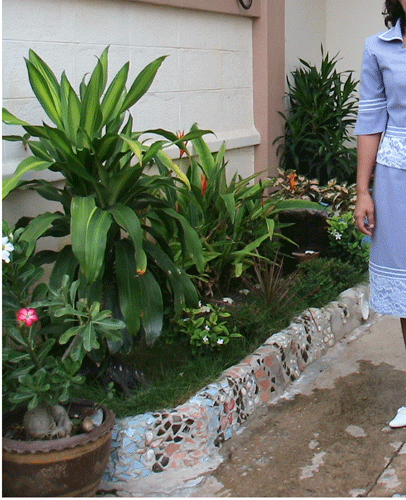 อันนี้ต้องบอกว่า แม่ภูมิ จับจอบ จับเสียมเองล้วนๆ ทำอยู่ 2 วันก็สวยมาก(ตามความคิดคนทำ) . . . เมื่อสวนสวยปัญหาก็เกิด เมื่อเจ้าแมวมักจะมาเยี่ยมเยียน เป็นแมวไร้เจ้าของอีกต่างหาก แล้วทิ้ง "อึ"อันทรงกลิ่นไว้ด้วย โอ้แม่เจ้า เหม็นมากๆๆ เมื่อกลับจากทำงาน ก็ต้องเก็บ"อึแมว" ทุกวันเลยค่ะ ความจริงแม่ภูมิไม่ลำบากเลย เพราะหน้าที่นี้ เป็นของพ่อภูมิ