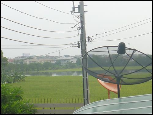 กลับบ้าน .. เดินขึ้นไป .. หมู่บ้านเราน้ำยังแห้งนะ .. ภาวนาให้มาไม่เยอะแค่นี้ก็ใจเสียแล้ว .. มองไปทุ่งนาหลังโครงการ .. ยังเขียวอยู่ .. แต่ระดับน้ำเริ่มขยับเข้ามาเยอะแล้ว