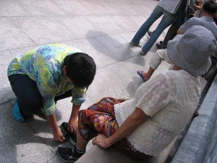 เดินฝ่าความร้อนและผู้คนออกจากวัด.. มีคุณพี่เลี้ยงทำหน้าที่เป็นไม้เท้า ตอนอยู่ในวัดยายมดเอ็กซ์บอกว่าครั้งแรกที่มากราบพระนั้นห้าสิบสี่ปีมาแล้ว ตอนแต่งงานใหม่ๆ สามีเธอ..บิดาข้อยเองเป็นคนพามา.. บรรยากาศและการตกแต่งไม่อลังการ์เหมือนที่เห็นวันนี้ มีขำด้วย..ตอนอยู่ในวัดกระซิบกระซาบ ต่อหน้าองค์พระ ..เออๆ ออกไปจะซื้อลอตเตอรี่เลขห้าสี..มีความหวัง..