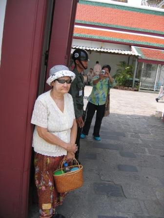 เหมือนหม่อมแม่ในบ้านทรายทองจริงๆ นะเนี่ย ..ข้าทาสบริวารต้องดูแลใกล้ชิด จะเข้าออกวัด ต้องถอดรองเท้า มีเจ้าหน้าที่ถอดรองเท้าและเจ้าหน้าที่เก็บรองเท้าคอยบริการ