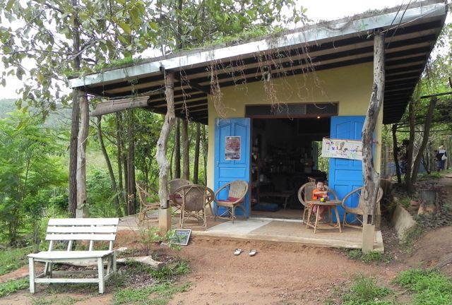 ร้านกาแฟก่อและฉาบด้วยดิน หลังคาดินปลูกข้าวได้