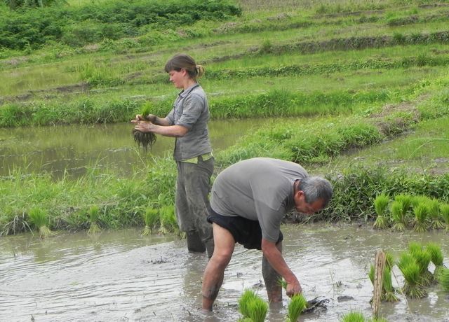 วันที่สมาชิกจะเดินทางกลับ เราไปรวมตัวกันที่แปลงกล้า สนุกสนานกับการมัดกล้ากลางฝนโปรยหลังอาหารเช้า เพื่อเตรียมเอาไปดำในแปลงนาที่เตรียมดินไว้ แมลงสัมผัสได้ถึงกลิ่นดินและฝนในอากาศที่สะอาด และอบอวลไปด้วยเสียงหัวเราะ