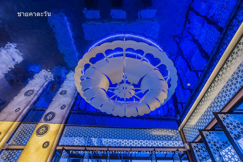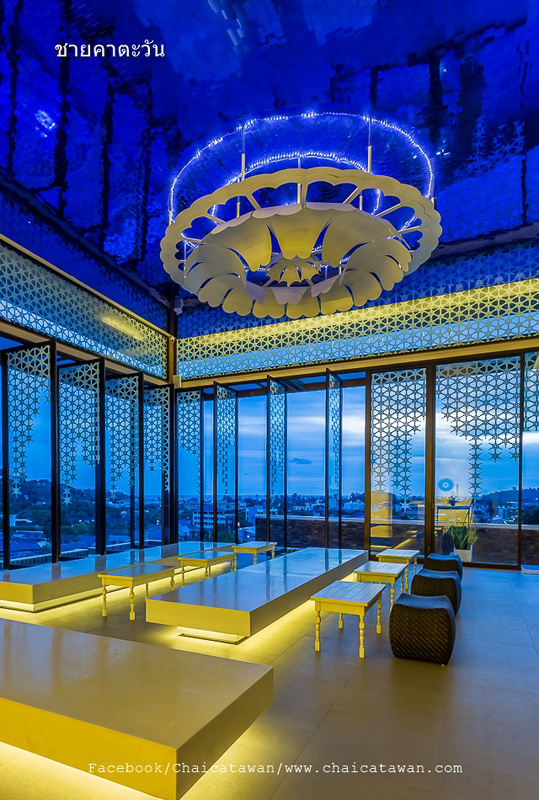 ล็อบบี้สวยมากออกแบบได้เก๋ทีเดียว บนเพดานสูงมีโคมไฟเป็นดอกยามา ที่เป็นสัญญลักษณ์ของโรงแรมดอกใหญ่มาก