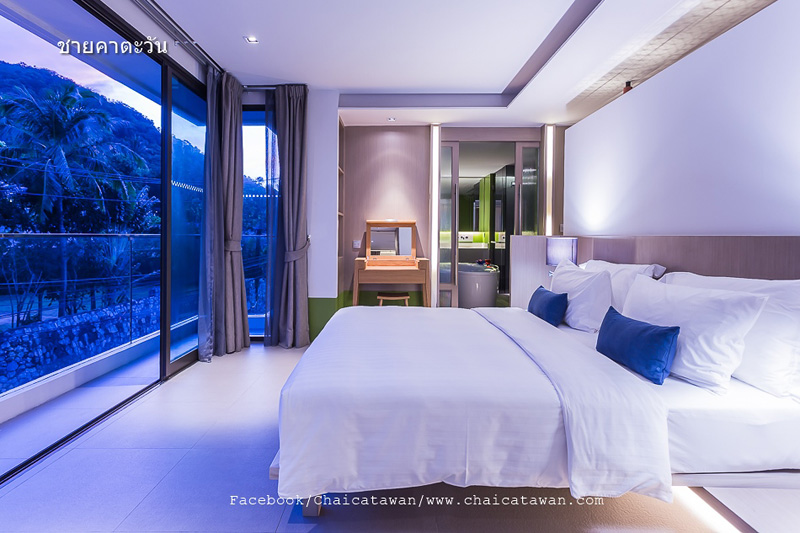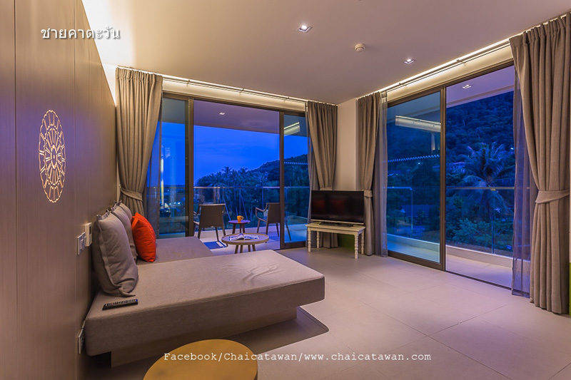 ไปดูห้องพักกันครับ ห้องนี้ สวีทซีวิว ขนาด63 ตร.ม. ภายในห้อง แบ่งออกเป็นส่วนห้องนั่งเล่น มีโซฟานั่งดูทีวี มีระเบียงรอบด้าน มองเห็นวิว ทั้งส่วนภูเขา และทะเล