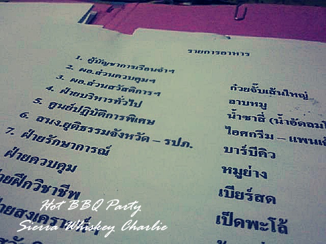 Food For Fun :: Hot Wok Mission # 11* Hot BBQ Party * ![]() ![]() โจทย์ 3F Mission 11 ประจำเดือน มกราคม 2555 นี้ โจทย์นี้ถือว่าโชคช่วยชาลีเลยค่ะ เพราะปีใหม่ที่ผ่านมา ![]() วัตถุดิบและวิธีการทำ เนื้อหมู และเนื้อไก่ คิดหนักกันสิคะงานนี้ บาร์บิคิว เหมือนจะง่าย แต่มันก็ยุ่งยากพอสมควร มือใหม่กันทั้งสนง.เลยค่ะ ไม่มีใครเคยทำบาร์บิคิวมาก่อน จะไปสั่งตามร้านที่เค้าทำขายอยู่แล้ว ร้านก็ปิดปีใหม่กันหมดเลยค่ะ สูตรหาได้จากในเน็ท แต่ก็นั่งกะวัตถุดิบกันง่วนเลย ชาลีขอโทษด้วยนะคะ ที่ให้สูตรแบบเป๊ะๆ ไม่ได้ ตอนทำก็มัวแต่รีบกลัวไม่ทันงานตอนเย็น ไม่ได้ถ่ายขั้นตอนมาโดยละเอียด เอากางเกงมาเปลี่ยนนั่งเตรียมของกันเลอะเทอะพอสมควร อิอิ ![]() เริ่มแรกก็หั่นหมูและไก่เป็นชิ้นเต๋านะคะ แล้วหมักด้วยเครื่องหมักพักไว้ก่อน จากนั้นก็นำสับปะรดมาหั่นเป็นชิ้นพอดีคำ และพริกหยวกก็นำมาหั่นเป็นท่อนๆเตรียมไว้ ส่วนมะเขือเทศใช้เป็นมะเขือเทศราชินี สามารถเสียบไม้ได้ทั้งลูกเลยไม่ต้องหั่นค่ะ เสร็จแล้วก็นำทุกอย่างมาเสียบไม้ สลับชั้นกันระหว่างหมู,ไก่ กับสับปะรด และพริกหยวก ปิดท้ายด้วยมะเขือเทศก็เสร็จแล้วค่ะ เตรียมนำไปปิ้ง - ย่าง ![]() จากนั้นก็เตรียมเตาสำหรับปิ้ง - ย่างบาร์บิคิวกันค่ะ เตาเล็กนะคะ เตาใหญ่ของฝ่ายอื่น ... ช่างแตกต่างกันมากมาย ฮ่าๆๆๆ ![]() มีบุคคลในเครื่องแบบ (พี่ๆ รปภ.) มาช่วยก่อไฟด้วยค่ะ ![]() ![]() ซุ้มของพวกเราค่ะ ![]() ![]() เริ่มปิ้ง - ย่าง บาร์บิคิวกันแล้วค่ะ ![]() สูตรที่ใช้ไม่ได้ใช้เนยนะคะ แต่ใช้น้ำมันงาแทนค่ะ ![]() สุกแล้วค่ะ ![]() ![]() ชอบซอสพริก หรือซอสมะเขือเทศ ก็จัดไปค่ะ ![]() ![]() เริ่มมืดเริ่มมองไม่เห็นแล้วค่ะ ต้องฉายไฟปิ้ง - ย่างกันแล้ว ![]() ![]() หลังๆ เริ่มทำไม่ทัน ต้องช่วยกันทั้งคนกิน คนทำเลยค่ะ ![]() ![]() จบแล้วค่ะ ขอบคุณที่เข้ามาเยียมชม อย่าลืมทักทายกันนะคะ คืนนี้ชาลีตาสว่างนอนไม่หลับ อัพบล๊อกเสร็จตีสองพอดี ชาลีขอลา Mission นี้ไปด้วยภาพนี้ค่ะ หวังว่าจะไม่ช้าไปถ้าจะกล่าวว่า สวัสดีปีใหม่ ๒๕๕๕ นะคะ ![]() แล้วพบกันใหม่ Mission ต่อไปค่ะ ... บายๆๆๆ ![]() - รำวงปีใหม่ - ![]() ![]() นั่งกินด้วยคนค่ะน้องชาลี