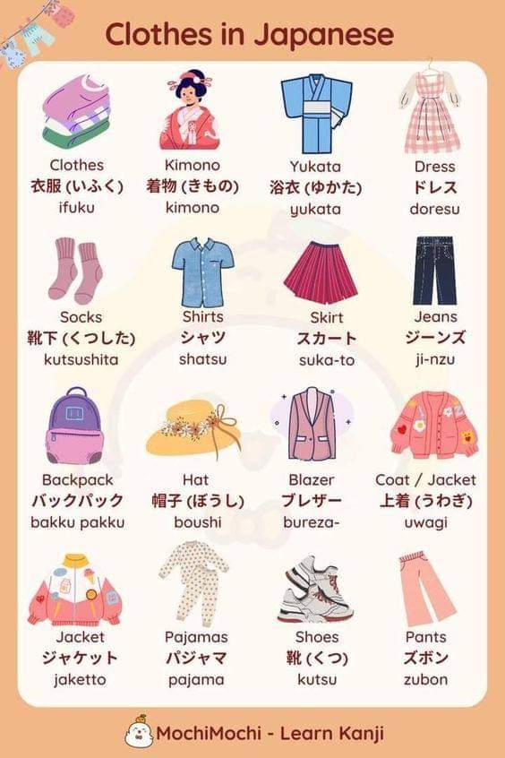เสื้อผ้า clothes in japanese