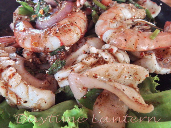 เปลี่ยนบรรยากาศด้วย ลาบทะเล กุ้งตัวโตกับปลาหมึกเนื้อหนาเต็มคำ กระเด้งดึ๋งดั๋งอยู่ในปาก เอื๊อกก!!!