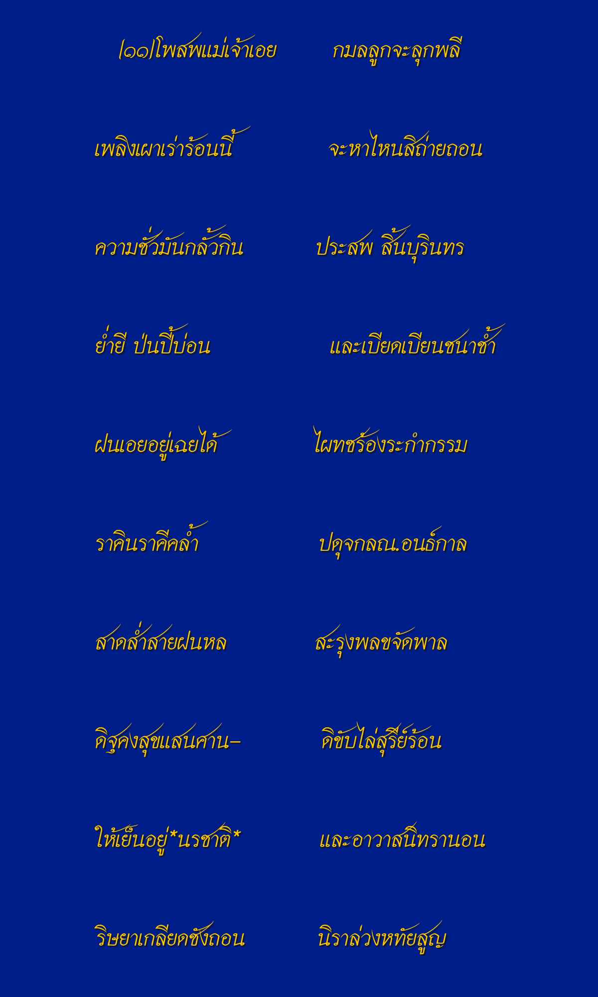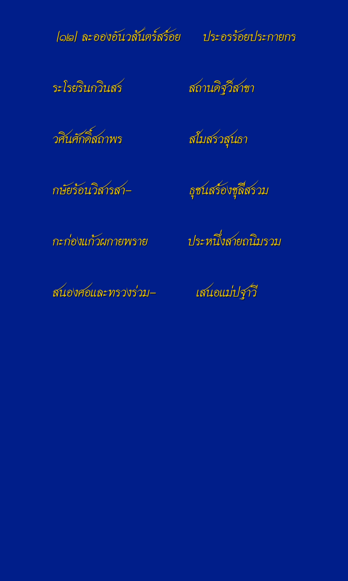 สิมาโนชลุใฝ่หา รึกลลวงเพาะพาธา ก็ทีท่าประจงจาร ๑๒ หนึ่งเนกะติกา เสน่หาวิโวหาร ก่อเกิดคณิตพาล ภยะด่านพิบัติผล ๑๑ โดย: เฒ่ายาจก IP: 171.101.102.255 วันที่: 10 พฤศจิกายน 2568 เวลา:20:22:12 น.