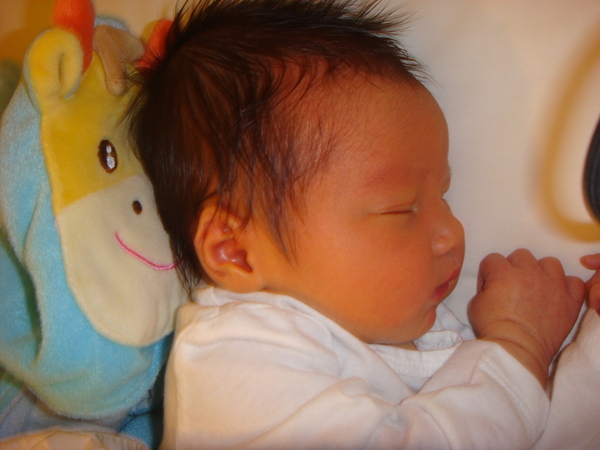 วันที่หก เย้ เราเริ่มซี้กันแล้ว ลูกเริ่มนอนนานขึ้นและไม่ร้องไห้โมโหหิวเหมือนสองคืนที่ผ่านมาแล้ว สงสัยแม่เริ่มมีนมให้ลูกอิ่มท้องแล้วล่ะคับ วันนี้บอสของแดดดี้ส่งของมาเยี่ยมด้วย ของขวัญชิ้นแรกของลูก จาก คุณเดวิด แห่ง citi