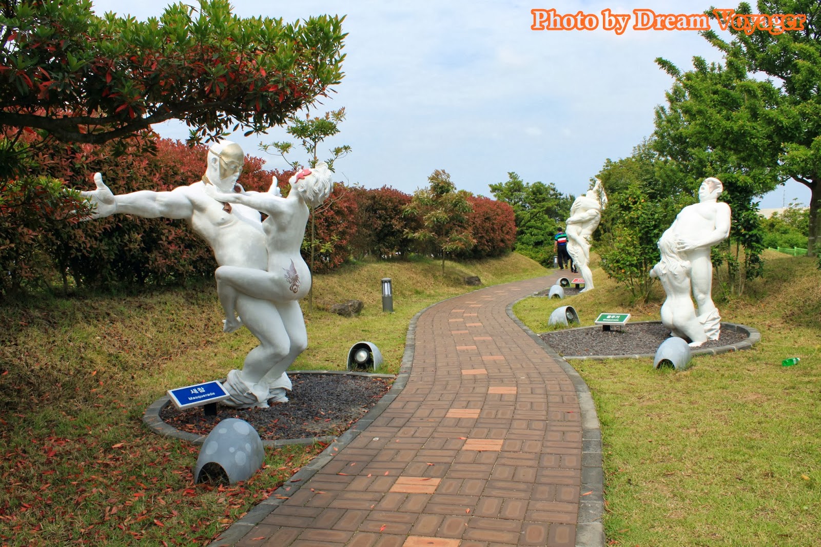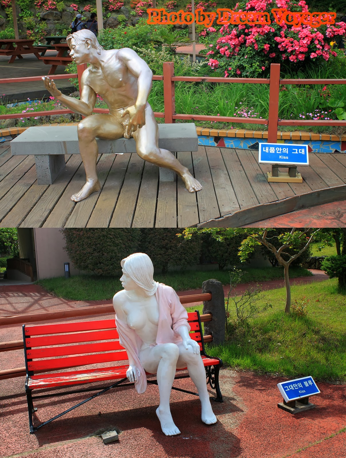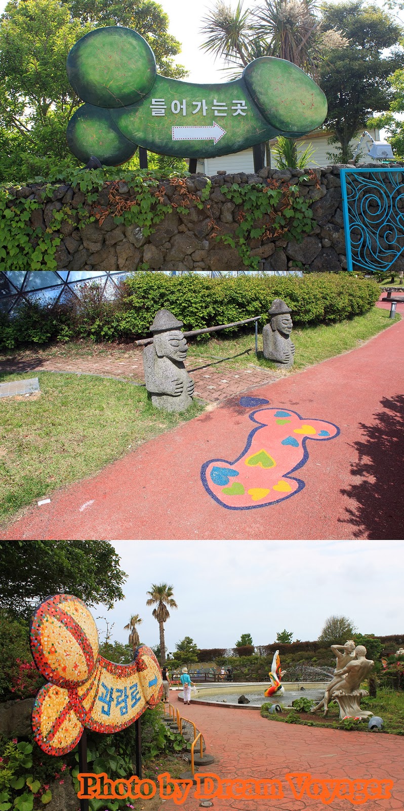 Jeju Love Land: สวนอิโรติกอาร์ต ผมวางแผนที่จะเขียนเรื่องท่องเที่ยวสถานที่แนวรักๆใคร่ๆแห่งหนึ่งช่วงใกล้วันวาเลนไทน์ แต่บังเอิญวาเลนไทน์ปีนี้ตรงกับวันมาฆบูชาพอดี ทำให้ผมตัดสินใจลำบากว่าจะเขียนบทความแนวกิเลสตัณหาหรือแนวธรรมะดี สุดท้ายอธรรมก็ชนะธรรมะ (ซะยังงั้น) เลยขอเขียนเรื่องราวการท่องเที่ยวที่อบอวลด้วยความรักแต่แอบด้านมืดนิดๆ สถานที่ท่องเที่ยวที่จะพาไปในวันนี้ชื่อว่า Jeju Love Land (제주러브랜드) อยู่ที่เกาะเชจู ทางตอนใต้ของประเทศเกาหลีใต้ ฟังแค่ชื่ออาจไม่รู้ว่ามันดาร์คยังไง จริงๆแล้วที่นี่เป็นสวนแสดงศิลปะที่เกี่ยวข้องกับความรัก มีตั้งแต่แนวกุ๊กกิ๊กไปจนถึงเรื่องใต้ร่มผ้า (เป็นอันหลังซะเยอะ) เนื่องจากผมขี้เกียจตีตรา 18+ ก็เลยเลือกเอาแต่เฉพาะรูปที่ไม่หวาดเสียวจนเกินไปมาลงเท่านั้น งานศิลปะส่วนใหญ่เป็นงานประติมากรรม แนวกุ๊กกิ๊กหวานแหวว มาแบบศิลปะแฝงปรัชญาให้ตีความ ไปจนถึงโจ่งแจ้งโจ๋งครึ่ม เห็นปุ๊บรู้ความหมายปั๊บ แต่ถึงยังงั้นก็ไม่ได้ออกมาแบบลามกอนาจารโต้งๆหรือสื่อเชิงกระตุ้นกามารมณ์ซะทีเดียว งานทุกชิ้นมีความเป็นศิลปะแฝงอยู่ หลายๆผลงานออกแนวชวนขำขันมากกว่า อันนี้จินตนาการเอาเองว่าถ้าหมุนด้ามจับแล้วจะเกิดอะไรขึ้น ทุกสิ่งทุกอย่างในสวนจะเป็นไปในธีมเดียวกัน ไม่ว่าจะเป็นป้ายบอกทาง เอ่อ...อันนี้ป้ายจะบอกอะไรครับ ม้านั่ง ให้เลือกได้ตามขนาดที่ใช่หรือไซส์ที่ชอบ หรือจะเลือกม้านั่งที่สามารถแอ๊คชั่นถ่ายรูปได้ มีทั้งเวอร์ชั่นสำหรับชายและหญิง ซุ้มประตูเดินลอดเพื่อความเป็นสิริมงคล(เหรอ) ก๊อกน้ำดื่ม เห็นแล้วชวนกระหายมั้ยนี่ ประตูห้องน้ำ (คำเตือน...คุณสุภาพสตรีกรุณาอย่ากำมือจับประตูแรง) ของฝากของที่ระลึกแนวทะลึ่งนิดๆชวนอมยิ้มหน่อยๆ มีโดมกระจกที่จัดแสดงส่วนในอาคาร ภายในอาคาร ส่วนใหญ่เป็นงานตุ๊กตาดินปั้นขนาดเล็ก พยายามสกรีนรูปคัดเฉพาะแบบที่พอหลิ่วตาดูได้ หลายคนสงสัยว่าใครจะใจกล้าหน้าด้านมาเที่ยวที่แบบนี้ แต่เชื่อมั้ยครับเขาว่ากันว่าคู่แต่งงานที่มาฮันนีมูนที่เกาะเชจูนิยมมาทัศนศึกษาที่สวนนี้กันมาก ถ้าไม่อคติกับความอิโรติกเกินไป ผมว่าที่นี่เป็นสวนที่จัดได้สวยงามมีบรรยากาศดีเลยทีเดียว การเดินทางไป Jeju Love Land จากเมือง Jeju-si ผมเรียกแท็กซี่ไปประมาณ 20 นาที ปัญหาจะอยู่ตอนขากลับเพราะหาแท็กซี่ยาก ถนนด้านหน้าสวนมีแท็กซี่วิ่งผ่านน้อยอ้อ...ที่นี่ห้ามเด็กอายุต่ำกว่า 18 เข้านะครับ เว็บไซด์ของ Jeju Love Land //www.jejuloveland.com/eng.htmlอั๊ยยะ แปลกดีค่ะ