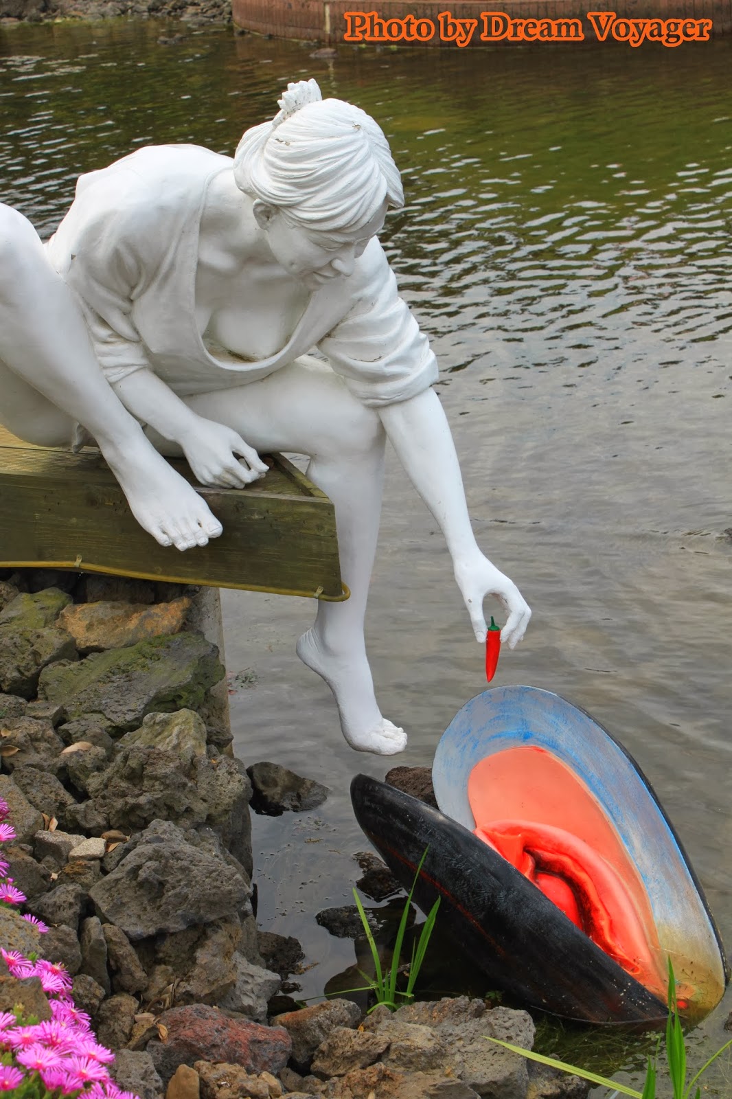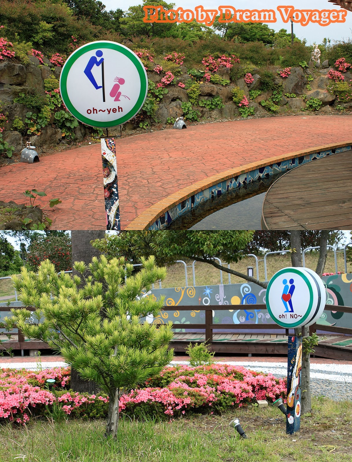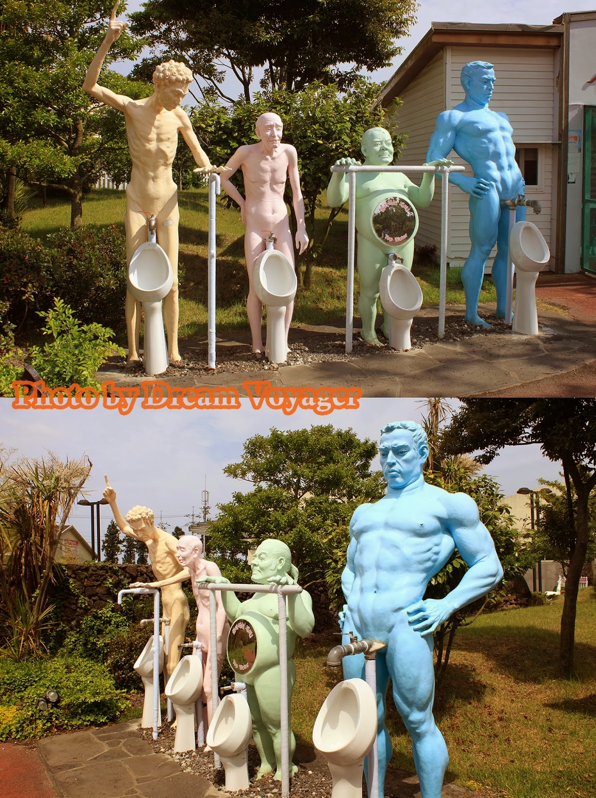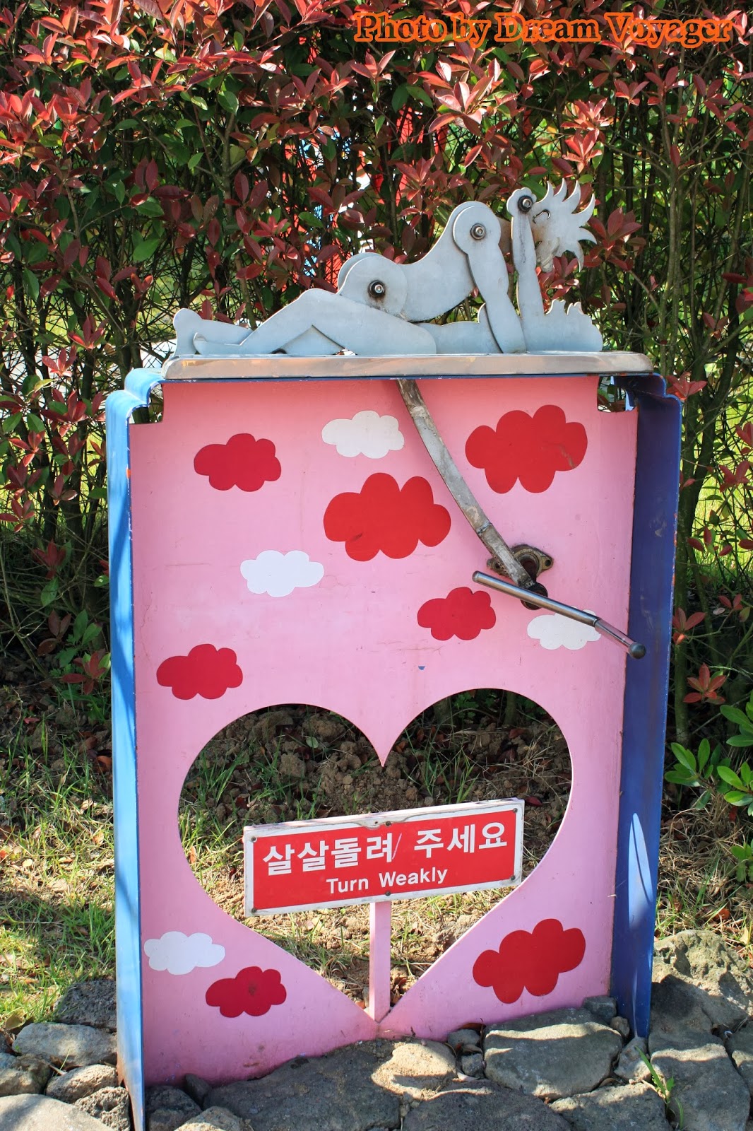 Jeju Love Land: สวนอิโรติกอาร์ต ผมวางแผนที่จะเขียนเรื่องท่องเที่ยวสถานที่แนวรักๆใคร่ๆแห่งหนึ่งช่วงใกล้วันวาเลนไทน์ แต่บังเอิญวาเลนไทน์ปีนี้ตรงกับวันมาฆบูชาพอดี ทำให้ผมตัดสินใจลำบากว่าจะเขียนบทความแนวกิเลสตัณหาหรือแนวธรรมะดี สุดท้ายอธรรมก็ชนะธรรมะ (ซะยังงั้น) เลยขอเขียนเรื่องราวการท่องเที่ยวที่อบอวลด้วยความรักแต่แอบด้านมืดนิดๆ สถานที่ท่องเที่ยวที่จะพาไปในวันนี้ชื่อว่า Jeju Love Land (제주러브랜드) อยู่ที่เกาะเชจู ทางตอนใต้ของประเทศเกาหลีใต้ ฟังแค่ชื่ออาจไม่รู้ว่ามันดาร์คยังไง จริงๆแล้วที่นี่เป็นสวนแสดงศิลปะที่เกี่ยวข้องกับความรัก มีตั้งแต่แนวกุ๊กกิ๊กไปจนถึงเรื่องใต้ร่มผ้า (เป็นอันหลังซะเยอะ) เนื่องจากผมขี้เกียจตีตรา 18+ ก็เลยเลือกเอาแต่เฉพาะรูปที่ไม่หวาดเสียวจนเกินไปมาลงเท่านั้น งานศิลปะส่วนใหญ่เป็นงานประติมากรรม แนวกุ๊กกิ๊กหวานแหวว มาแบบศิลปะแฝงปรัชญาให้ตีความ ไปจนถึงโจ่งแจ้งโจ๋งครึ่ม เห็นปุ๊บรู้ความหมายปั๊บ แต่ถึงยังงั้นก็ไม่ได้ออกมาแบบลามกอนาจารโต้งๆหรือสื่อเชิงกระตุ้นกามารมณ์ซะทีเดียว งานทุกชิ้นมีความเป็นศิลปะแฝงอยู่ หลายๆผลงานออกแนวชวนขำขันมากกว่า อันนี้จินตนาการเอาเองว่าถ้าหมุนด้ามจับแล้วจะเกิดอะไรขึ้น ทุกสิ่งทุกอย่างในสวนจะเป็นไปในธีมเดียวกัน ไม่ว่าจะเป็นป้ายบอกทาง เอ่อ...อันนี้ป้ายจะบอกอะไรครับ ม้านั่ง ให้เลือกได้ตามขนาดที่ใช่หรือไซส์ที่ชอบ หรือจะเลือกม้านั่งที่สามารถแอ๊คชั่นถ่ายรูปได้ มีทั้งเวอร์ชั่นสำหรับชายและหญิง ซุ้มประตูเดินลอดเพื่อความเป็นสิริมงคล(เหรอ) ก๊อกน้ำดื่ม เห็นแล้วชวนกระหายมั้ยนี่ ประตูห้องน้ำ (คำเตือน...คุณสุภาพสตรีกรุณาอย่ากำมือจับประตูแรง) ของฝากของที่ระลึกแนวทะลึ่งนิดๆชวนอมยิ้มหน่อยๆ มีโดมกระจกที่จัดแสดงส่วนในอาคาร ภายในอาคาร ส่วนใหญ่เป็นงานตุ๊กตาดินปั้นขนาดเล็ก พยายามสกรีนรูปคัดเฉพาะแบบที่พอหลิ่วตาดูได้ หลายคนสงสัยว่าใครจะใจกล้าหน้าด้านมาเที่ยวที่แบบนี้ แต่เชื่อมั้ยครับเขาว่ากันว่าคู่แต่งงานที่มาฮันนีมูนที่เกาะเชจูนิยมมาทัศนศึกษาที่สวนนี้กันมาก ถ้าไม่อคติกับความอิโรติกเกินไป ผมว่าที่นี่เป็นสวนที่จัดได้สวยงามมีบรรยากาศดีเลยทีเดียว การเดินทางไป Jeju Love Land จากเมือง Jeju-si ผมเรียกแท็กซี่ไปประมาณ 20 นาที ปัญหาจะอยู่ตอนขากลับเพราะหาแท็กซี่ยาก ถนนด้านหน้าสวนมีแท็กซี่วิ่งผ่านน้อยอ้อ...ที่นี่ห้ามเด็กอายุต่ำกว่า 18 เข้านะครับ เว็บไซด์ของ Jeju Love Land //www.jejuloveland.com/eng.htmlอั๊ยยะ แปลกดีค่ะ