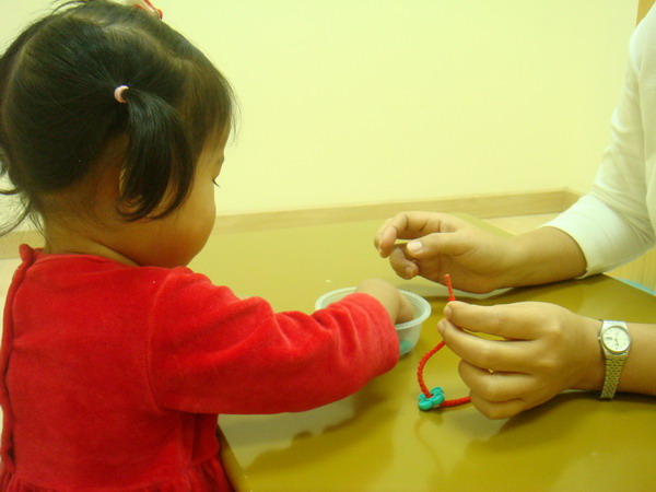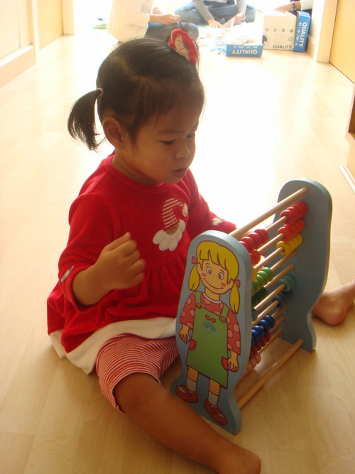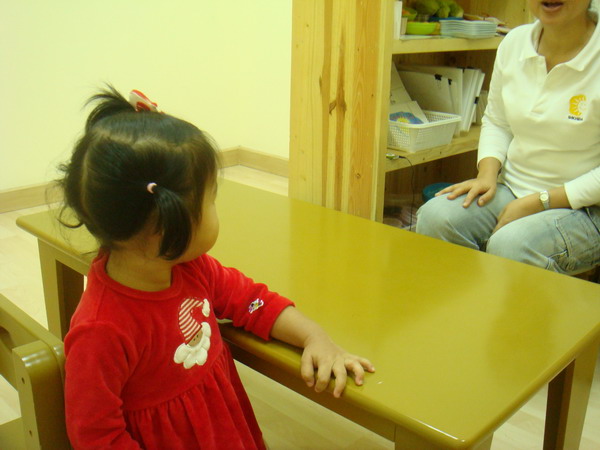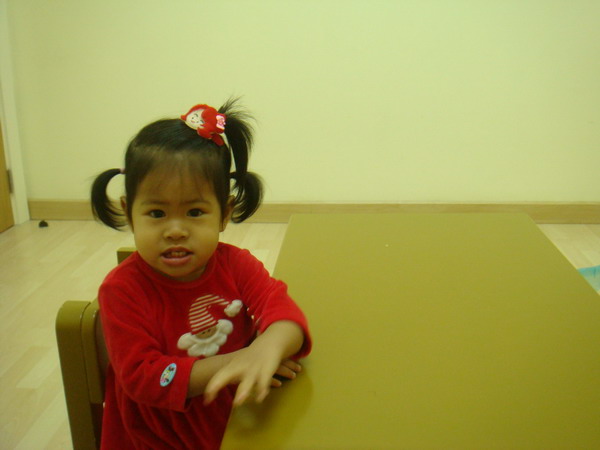 เอแคลร์เริ่มสตาร์ทเรียนที่นี่ตอน 1 ขวบ 4 เดือน สมัครพร้อมๆกับที่ Helen Doron เลย นับจากวันที่อัพ blog ก็เรียนมาแล้วแค่ 5 ครั้งเอง การเรียนที่นี่เริ่มออกแนววิชาการจ๋าแล้วนะคะ ไม่มีลุกขึ้นกระโดดโลดเต้น วิ่งเล่นสนุกสนานเหมือนที่อื่นๆแล้ว เพราะฉะนั้นเด็กที่จะมาเรียนที่นี่ควรจะมีความนิ่งมาพอตัวแล้วนะคะ หรือถ้าไม่นิ่งก็ไม่ควรจะซนมากจนเกินไป เพราะเวลาเรียนที่นี่จะต้องนั่งเรียนกับโต๊ะเรียนส่วนตัว ของใครของมันเท่านั้น แล้วก็ฟังที่คุณครูสอนอย่างตั้งใจตลอด ชม. แต่อย่าคิดว่าน้องเอแคลร์จะนิ่งนะคะ ไม่มีทางซะหล่ะ ก็จะเอาอะไรก็เด็กขวบสี่เดือนอ่ะนะ มันก็ต้องมีลุกเดินจากโต๊ะไปมาบ้าง กลับมานั่งที่บ้างเวลาคุณครูมีของเล่นมาให้ฝึกทักษะ