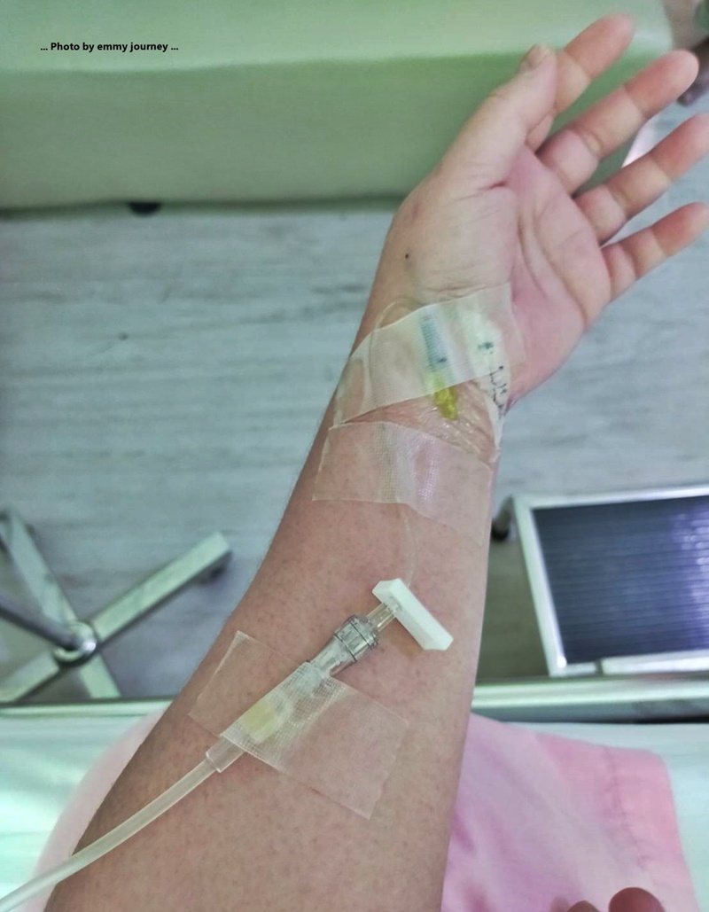 ตอนเย็นขึ้นมาที่ห้องผู้ป่วยหมอให้น้ำเกลือ ให้เราทานเกลือแร่แทนน้ำเปล่า และให้ปัสสาวะบ่อยๆ โดยที่หมอสั่งให้ปัสสาวะใส่ขวดน้ำ หมอจะดูปริมาณน้ำเข้า-ออกในร่างกาย ระหว่างที่เป็นไข้เลือดออก เราจำได้เลยว่าวันแรกปัสสาวะสีเหลืองเข้มจนเกือบเป็นสีชาจีน พอวันรุ่งขึ้นปัสสาวะค่อยๆ สีจางลง ที่ไม่ชอบสำหรับเรามากที่สุดคือ หมอสั่งเจาะเลือดไปตรวจทุก 8 ชั่วโมง (โครตเจ็บ เจ็บจนน้ำตาไหล เพราะตอนที่ไม่สบายพยาบาลหาเส้นเลือดเรายากมาก แขนและมือทั้งซ้ายขวาโดนเข็มเจาะจนพรุนไปหมด กลางคืนพยาบาลเข้ามาวัดไข้ได้ 38 องศา มีไข้ต่ำๆ เลยให้เราทานพารา 2 เม็ด