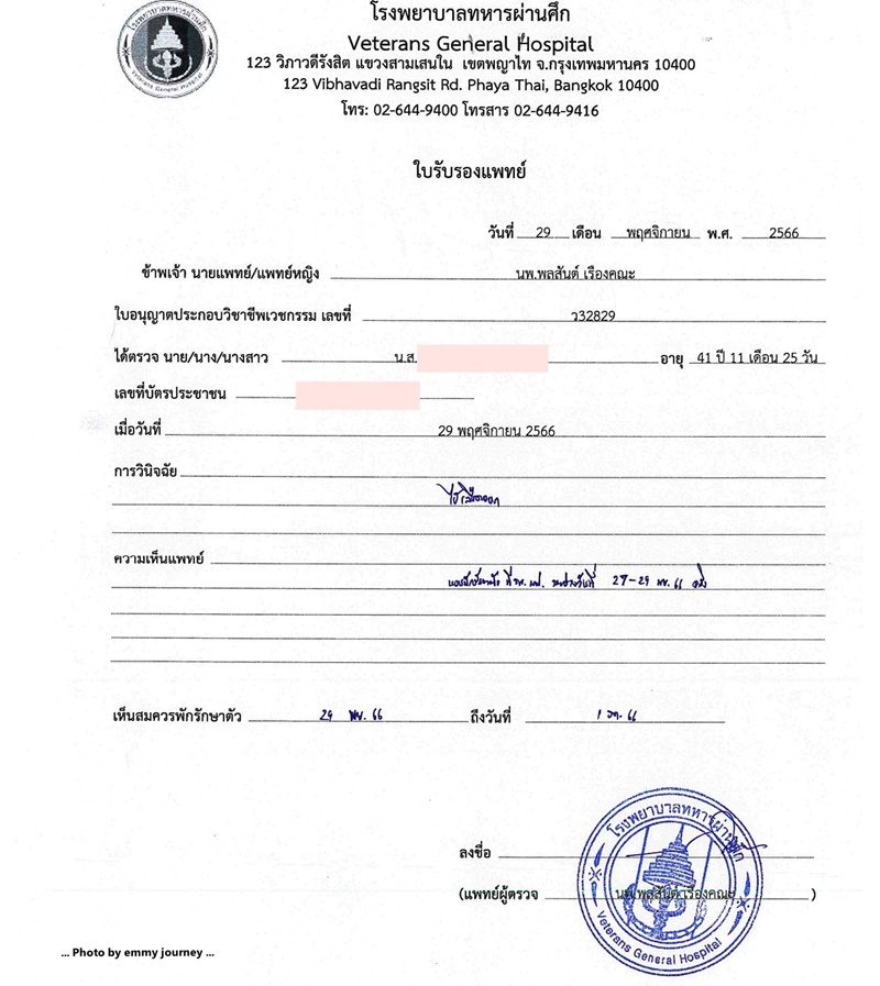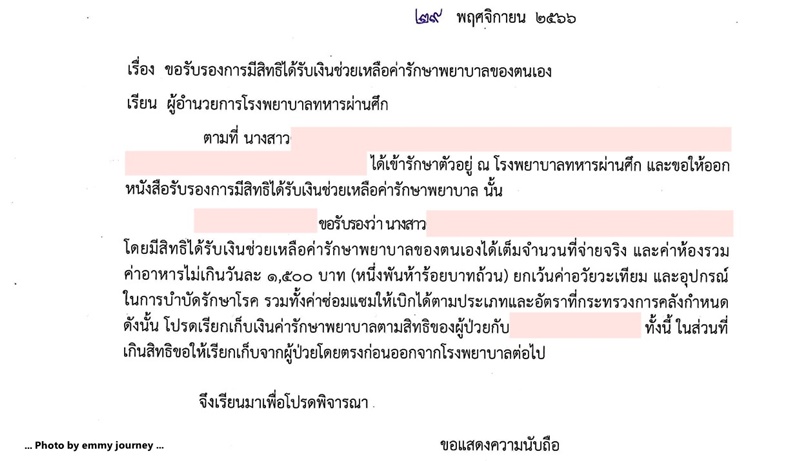 ได้ใบส่งตัวจากที่ทำงานเช้าวันที่ 29 พฤศจิกายน 2566 ได้มาก็รีบส่งให้เจ้าหน้าที่เพื่อประกอบการเคลียร์ค่าใช้จ่าย