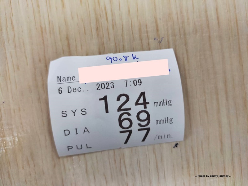 หลังจากเจาะเลือดเสร็จก็ขึ้นไปวัดความดัน ชั่งน้ำหนัก และรอพบหมอ