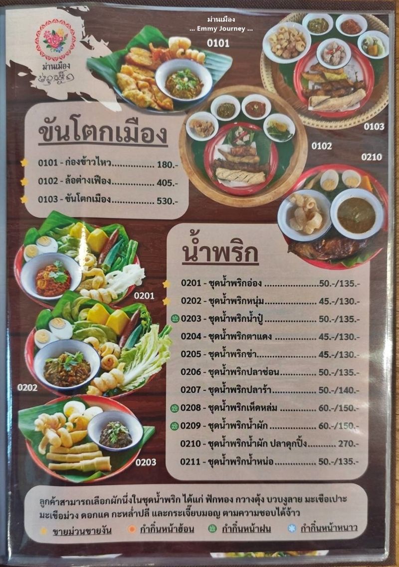 พามาทานอาหารเหนือ ที่ร้านม่านเมือง ร้านตั้งอยู่ในหมู่บ้านสัมมากร ถนนรามคำแหง แขวงสะพานสูง กรุงเทพมหานคร เปิดให้บริการทุกวันเวลา 9.00-21.00 น. มีที่จอดรถ หากมาในช่วงเย็นหรือวันหยุดอาจต้องหาที่จอดริมถนน มีที่นั่งทั้งโซนแอร์และไม่แอร์ เป็นร้านอาหารเหนือแบบเหนือแท้ๆ 100% หลายเมนูที่คนกรุงเทพอย่างเราไม่คุ้นเคย บางเมนูสำหรับเราคิดว่าทานยาก เพราะไม่รู้จักวัตถุดิบที่นำมาปรุง เช่น หลามบอน แกงเห็ดแปลกๆ ต่างๆ อย่างลองนะแต่กลัวทานเข้าไปแล้วแพ้
