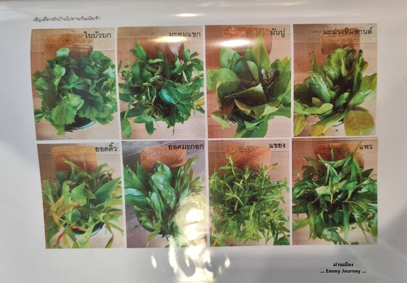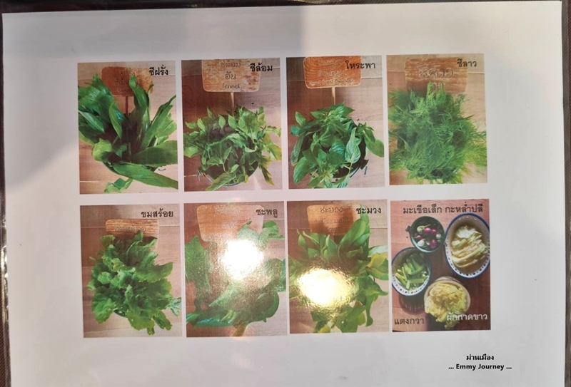ในเมนูมีรูปภาพบอกชื่อผักแต่ละชนิดด้วยค่ะ