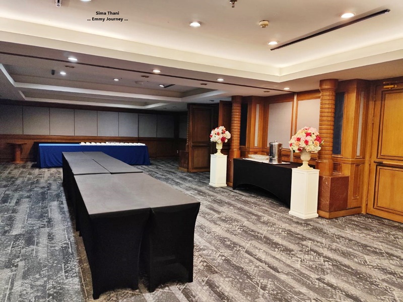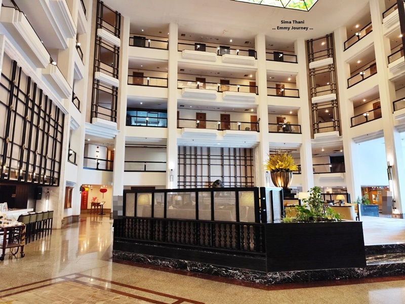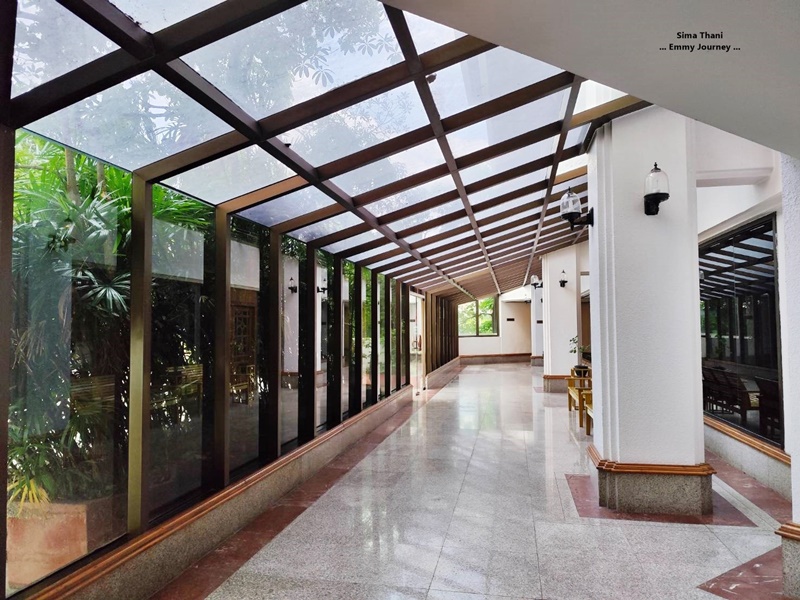 จากชั้นที่เราพัก ห้องอาหารเช้าต้องเดินมาทางด้านห้องสัมมนาและเดินลงบันไดมาชั้นล่าง