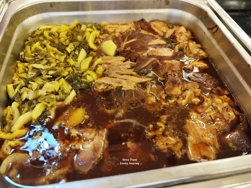 แกงเทโพหมูสามชั้น รสชาติดีเลย เปิดฝามาก็มีปริมาณแกงเท่านี้ เราเลยกินแต่ผักบุ้ง ให้พนักงานนำผักบุ้งมาเติม ก็ไม่มีใครนำมาเติมให้เศร้าใจ พอจะไปตักทานอีกครั้งมีแต่มันหมูเลยไม่เอา เสียดายรสชาติดีด้วย