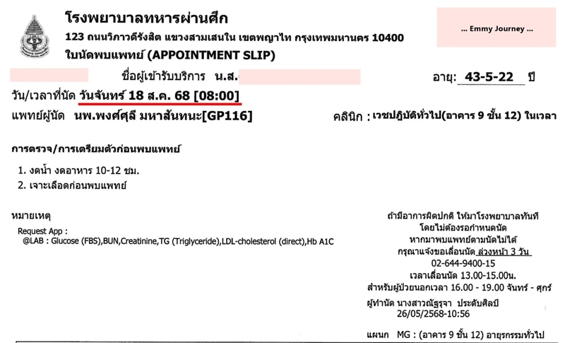 หมอนัดอีก 3 เดือน คือวันจันทร์ที่ 10 พฤศจิกายน 2568