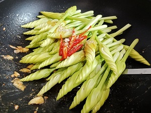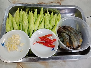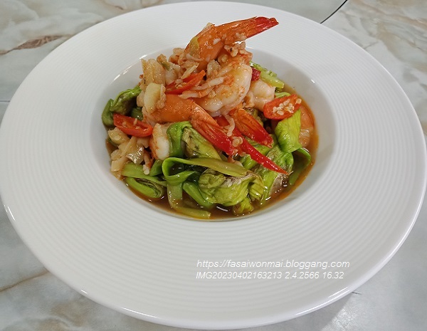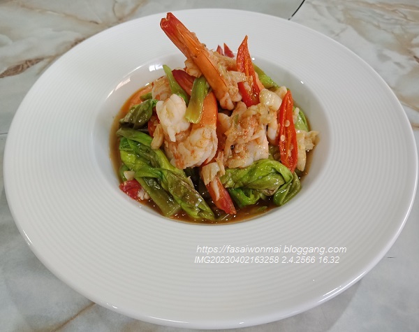 ชมจันทร์ผัดกุ้งน้ำมันหอย
