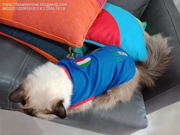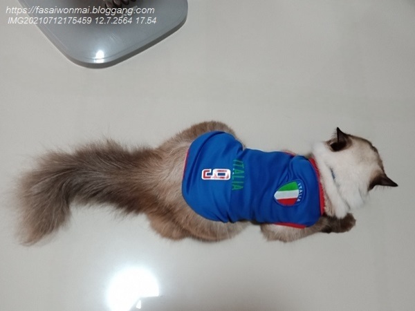 เหตุที่ต้องใส่เสื้อให้ก็เพราะนินจาต้องทายาบริเวณสีข้างนิดหน่อย แล้วก็ไม่อยากให้เขาเลียโดน ก็เลยต้องใส่เสื้อกันไว้ ช่วงนั้นก็เลย เชียร์อิตาลีทุกวัน 555