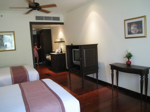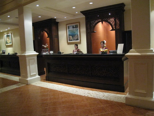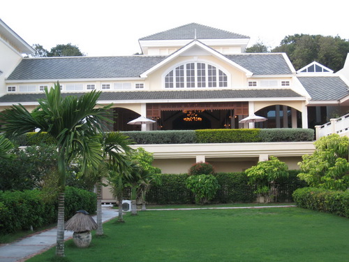 รถตู้เลี้ยวเข้าสู่ตัว resort สิ่งแรกที่เห็นคือ สนามกอล์ฟสีเขียว หญ้าตัดเรียบเกรียน ตลอดแนวถนนทางด้านขวามือ และแล้วรถตู้ก็พามาส่งที่หมาย