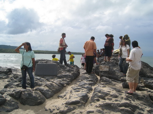 . นางเงือกอยู่ชายหาดฝั่งนี้ต่างหาก!! (แป่ว! แล้วที่วนมาตั้งนาน ตรู) เลยลงไปกะว่าจะถ่ายรูปกับนางเงือกให้เต็มอิ่มซะหน่อย โอ้ว คนเยอะมากกกกค่ะ เพราะวันนี้เป็นวันที่หลายโรงเรียนพานักเรียนไปทัศนศึกษาที่นี่ เด็กตัวเล็กๆ เสื้อแดงบ้าง เสื้อเหลืองบ้าง อะๆ อย่างเข้าใจผิด เป็นเสื้อพละโรงเรียนน้องๆค่า อิอิ มีเสื้อน้ำเงินด้วยนา 555 เอ่อ จะเข้าไปแย่งเด็กก็มิสามารถ จะเสีย image ของสาวสวยทั้งสองหมด สุดท้าย