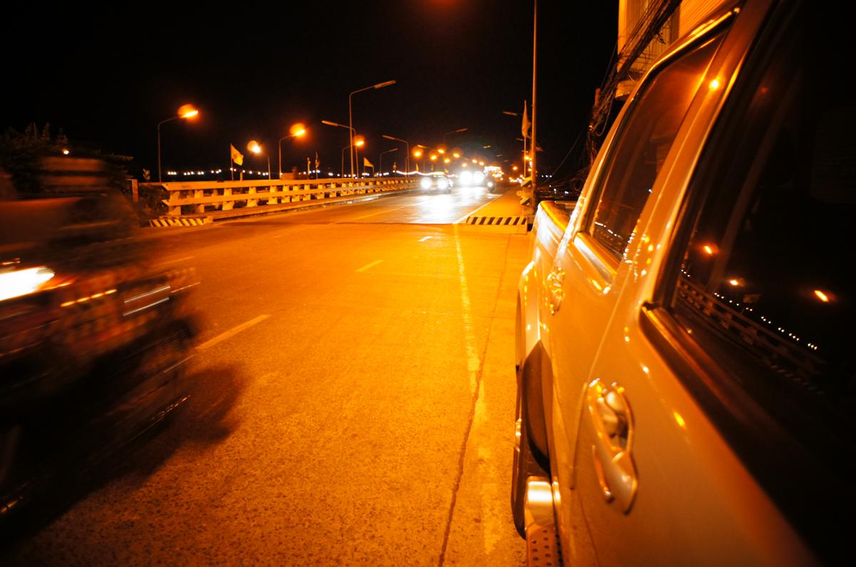 . จอด รถที่ คอสะพาน เออ ผมไม่มีขาตั้งกล้อง เลย เอากล้อง วาวท้ายกะบะ แทน เพราะมีคนบอก มาว่าอยากได้ภาพสวยๆ กลางคืนต้องใช้ขาตั้งกล้อง