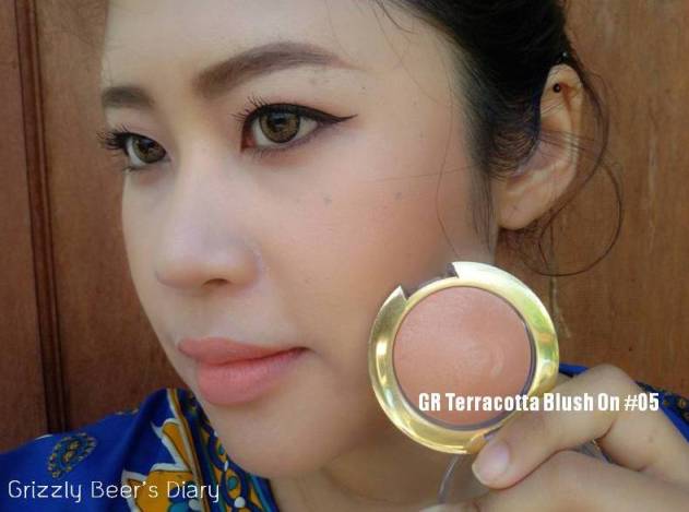 ตัวแรกเป็นบลัชออนเนื้อฝุ่นกึ่งครีม ผสมชิมเมอร์ GR Terracotta Blush On #05