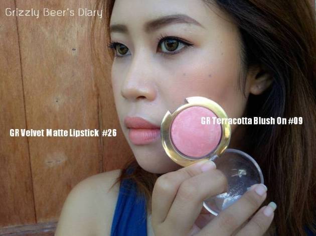 แก้มใช้ GR Terracotta Blush On #09 ส่วนปากก็ GR Velvet Matte Lipstick #26 เสร็จแล้วค่ะ