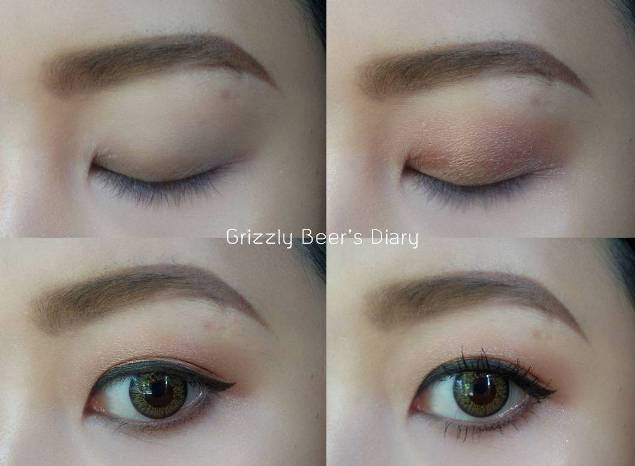 ส่วนดวงตาวันนี้ง่ายมากค่ะ ใช้นิ้วปาดอายแชโดว์สีชมพูเหลือบทองให้ทั่วเปลือกตา