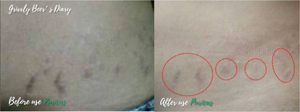 ปรากฎว่ารอยแตกลายช่วงเอวลดลงอย่างเห็นได้ชัดเจนมาก คิดว่าถ้าใช้ต่อเนื่องจะเห็นผลลัพธ์ที่ชัดเจนกว่านี้ค่ะ