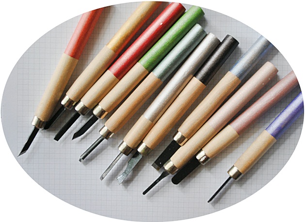 ชุดเครื่องมือแกะเต็มชุด ใช้หลักๆแค่2อัน ที่เป็น ปลายรูปตัว V กับปลายรูปตัว U